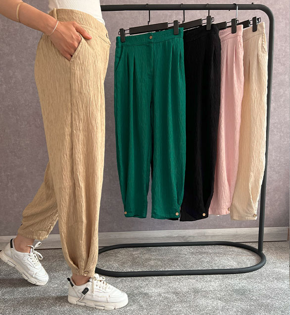 شلوار بامبو سندبادی در چهار رنگ جذاب صورتی، نسکافهای، سبز درباری و مشکی عرضه میشود. همین تنوع رنگ به شما این امکان را میدهد که بهراحتی آن را با انواع شومیز زنانه، مانتوهای سبک و یا حتی تیشرتهای روزمره ست کنید و استایل اسپرت یا نیمهرسمی خاص خودتان را بسازید.