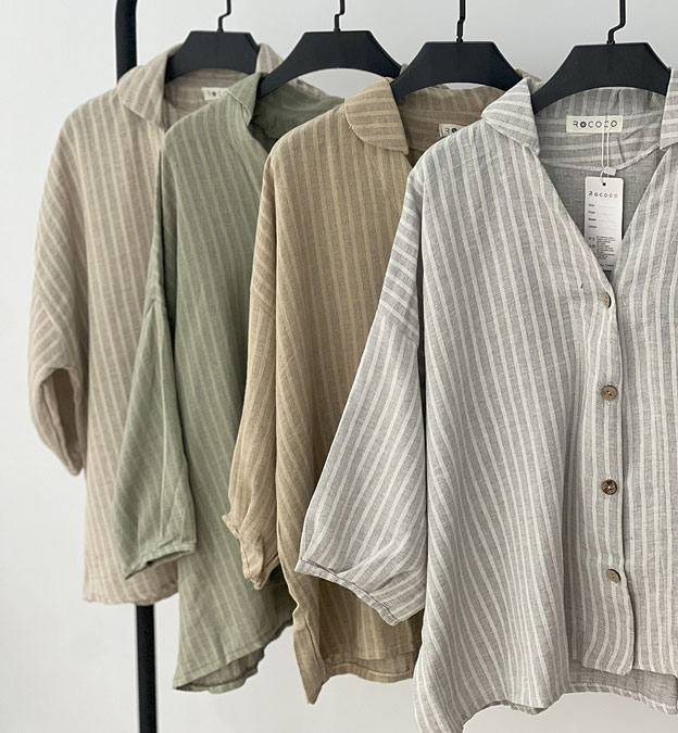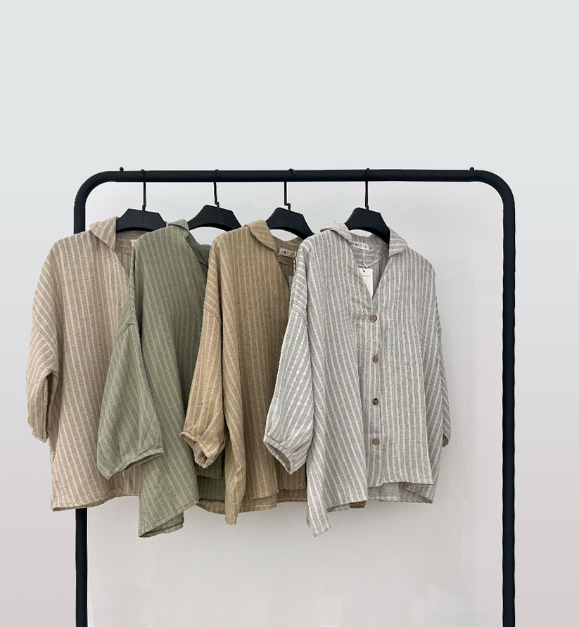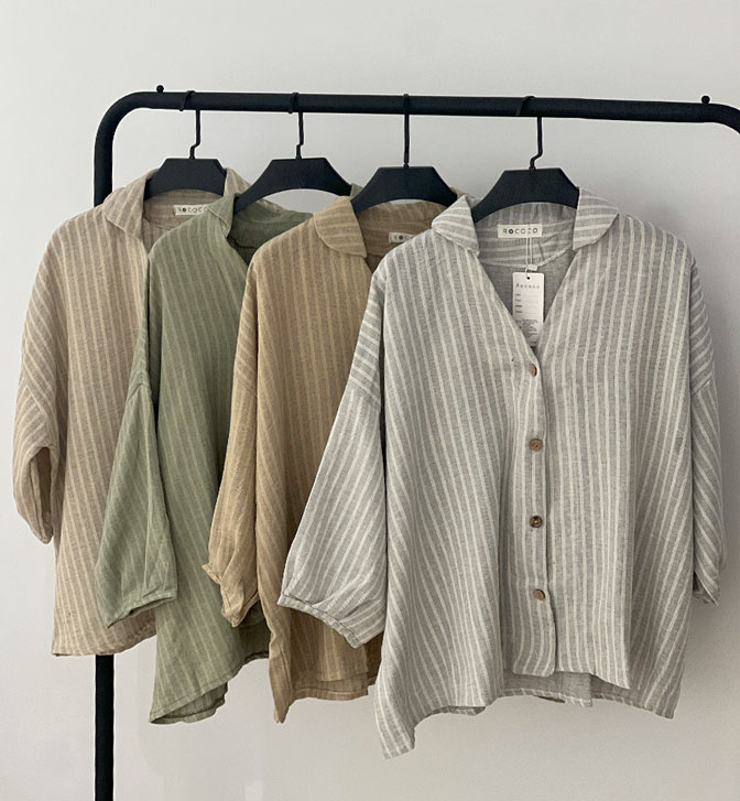 این شومیز راه راه در رنگهای متنوع و جذاب طوسی، نسکافهای، کرم و سبز صدری عرضه میشود. طیف رنگی ملایم و خاص آن باعث شده بهراحتی با شلوارهای جین، دامنی یا حتی استایلهای رسمیتر ست شود و برای موقعیتهای مختلف مناسب باشد.